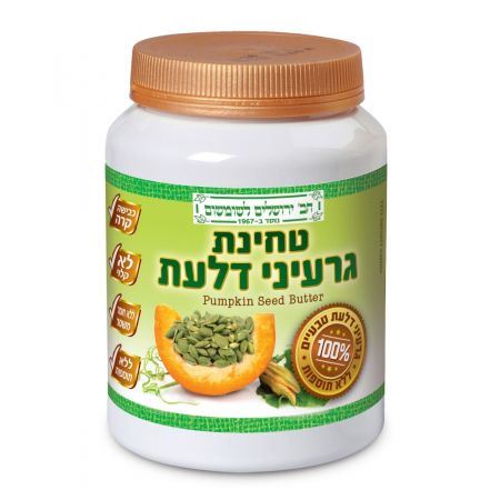 100% גרעיני דלעת טבעיים טחונים באבני ריחיים. הטחינה עשירה מאד במינרלים במיוחד אבץ, האבץ הוא מינרל חשוב במיוחד בכל הקשור לבריאות העור, ליצירה של קולגן, לריפוי של חתכים ופצעים בעור. טחינת גרעיני דלעת תורמת לשיפור האנרגיה ולחיזוק האון הגברי.