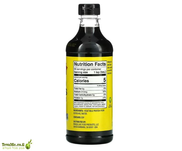 רוטב על בסיס חלבוני סויה אורגני בראג BRAGG - LIQUID AMINOS - משמש כחלופה לרוטב סויה, בעל טעם אומאמי שיכול להפחית רעב